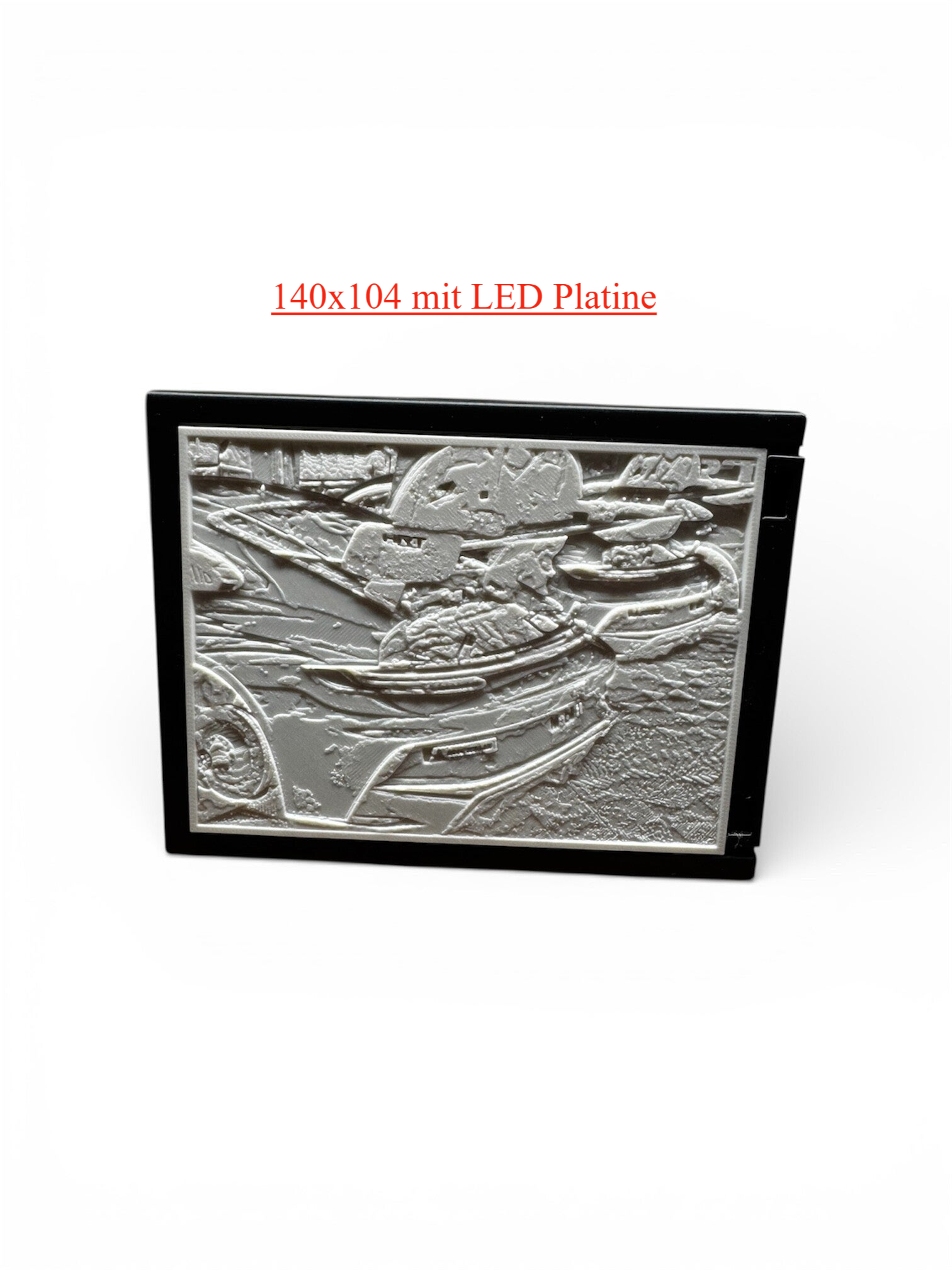 Aus deinem Lieblingsfoto entsteht ein einzigartiges 3D-Relief, das durch Licht und Tiefe lebendig wird.